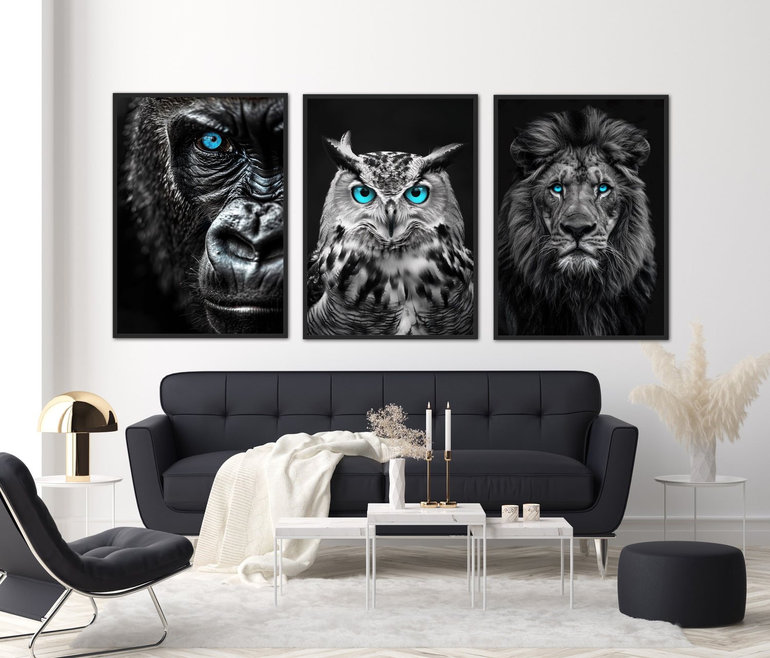 Dyk ned i dyrenes forunderlige verden med vores Blue Eyes plakatsæt, der fremhæver den unikke skønhed og mystik gennem dyrenes fortryllende blå øjne. Opdag tre fantastiske motiver af en gorilla, ugle og løve, perfekte til enhver dyreelsker