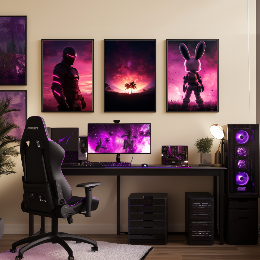 Tag din gaming-indretning til næste niveau med vores unikke gamer plakater, der kombinerer futuristiske motiver, intense farver og masser af personlighed. Perfekte til gaming værelset – skab en væg, der inspirerer og imponerer!