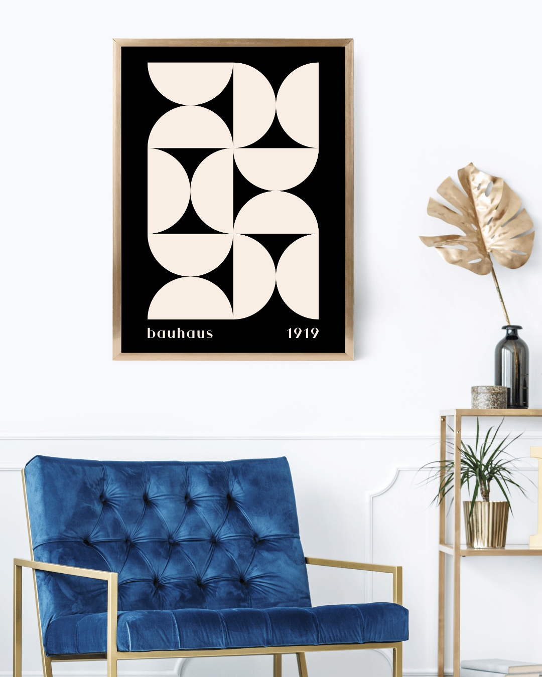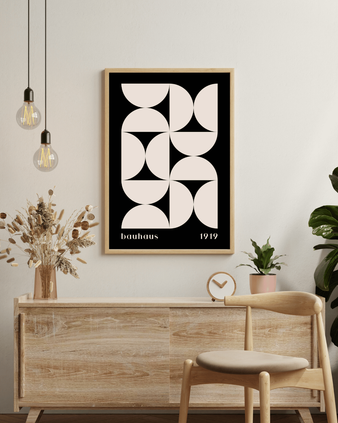 Plakaten fungerer særligt godt i stue, kontor, entré eller spisestue, hvor den kan fungere som et grafisk anker på væggen. I danske hjem med fokus på rene linjer og naturlige materialer tilfører denne plakat dybde og karakter uden at dominere rummet. Den kan hænge alene som et klart statement eller indgå i en billedvæg sammen med andre Bauhaus- eller geometriske plakater.