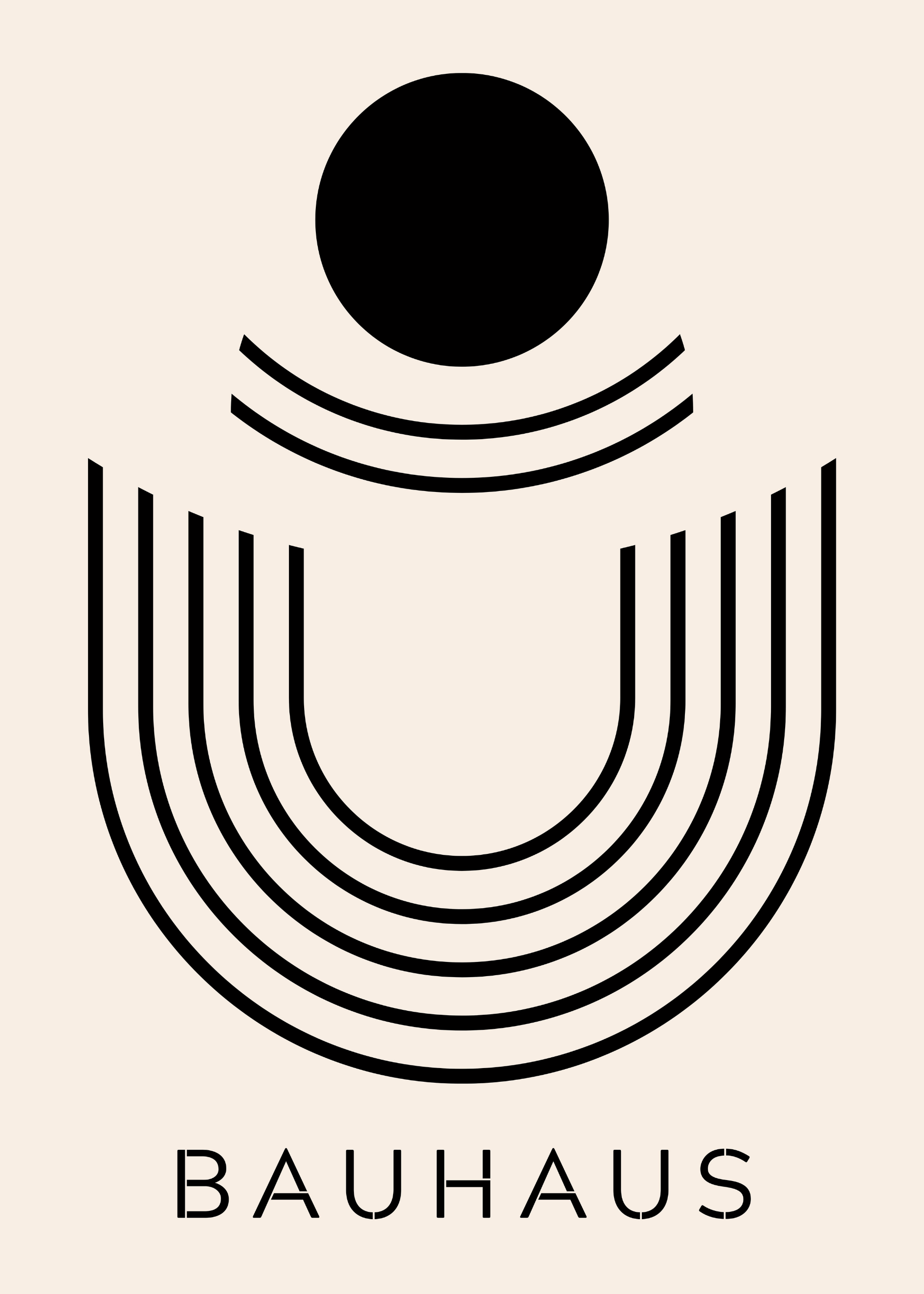 Bauhaus Plakat 41 er et stilrent og markant grafisk motiv, hvor en solid sort cirkel kombineres med bløde, gentagne buer, der skaber en følelse af balance, rytme og ro. Kompositionen er enkel, men gennemført – et klassisk Bauhaus-greb, hvor få elementer tilsammen danner et stærkt visuelt udtryk.