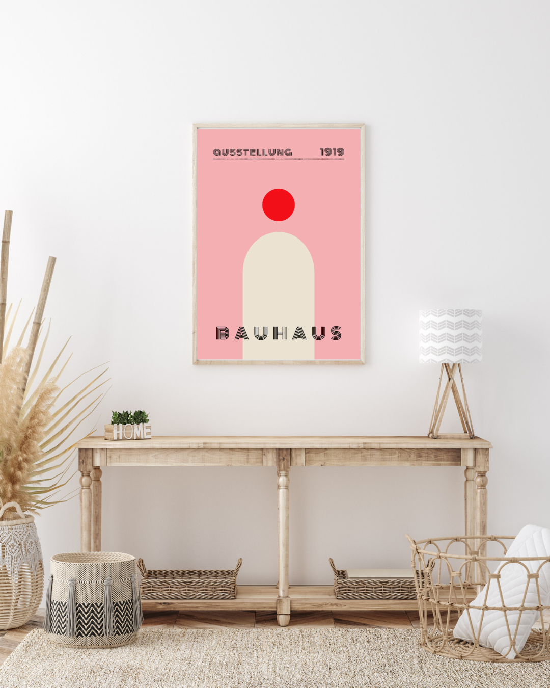 Udtrykket trækker tydelige referencer til klassisk Bauhaus-æstetik med fokus på form, funktion og balance, men er fortolket i et blødt og moderne formsprog. Det gør plakaten ideel til dig, der ønsker et skandinavisk udtryk med ro, varme og grafisk præcision.