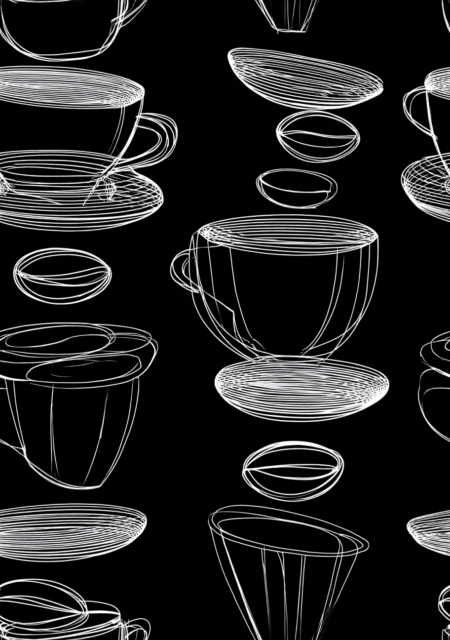 Den luftige stregteknik skaber en fornemmelse af bevægelse og ro på samme tid. Kaffekopperne nærmest svæver over siden – som små elementer i et større kaffeunivers. Den perfekte plakat for dig, der vil have et moderne udtryk uden at gå på kompromis med varmen i motivet.