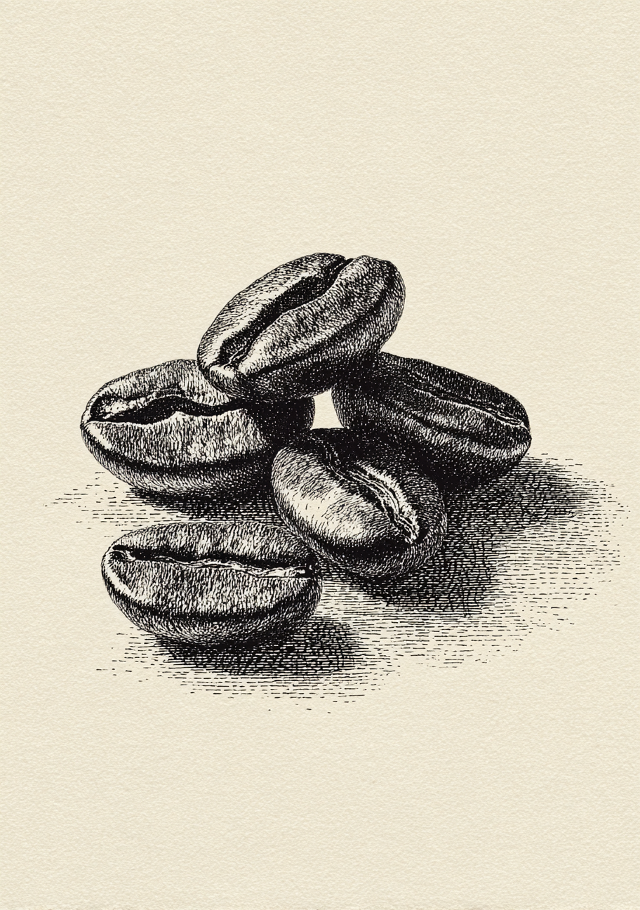 Der er noget særligt over den måde, enkel streg og tone kan skabe noget så velkendt som kaffebønner på ny. Motivet fremstår klassisk, næsten som et gammelt tryk, hvilket gør det nemt at indpasse i både moderne hjem og retroinspirerede rum.