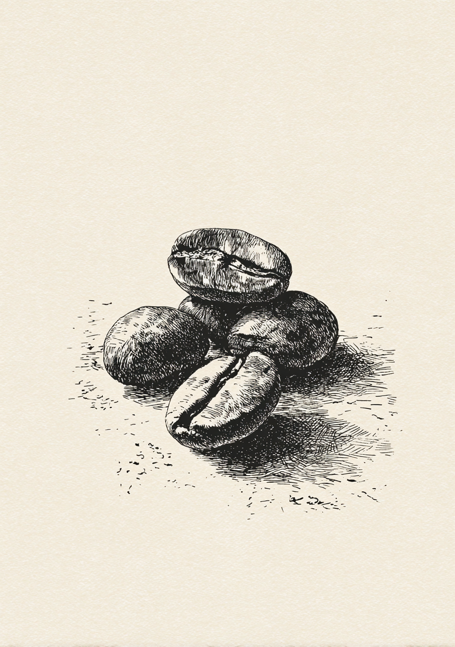 Motivets subtile spil mellem lys og skygge giver bønnerne en tredimensionel dybde, der næsten får duften af friskbrygget kaffe til at trænge igennem papiret. Denne plakat passer perfekt ind i:
